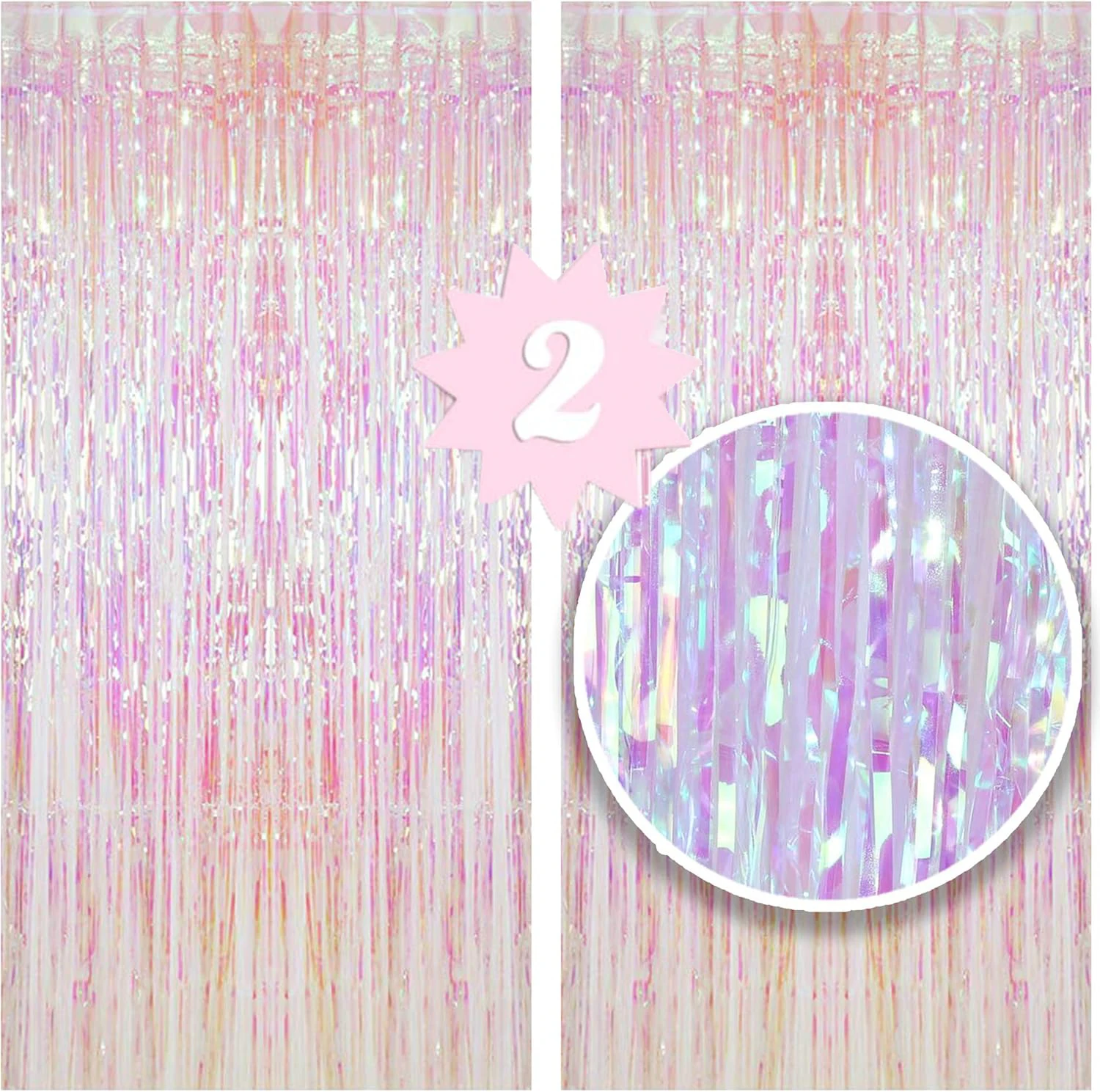 2-meter transparent iridescent pink rain curtain background wall decoration, birthday wedding party background decoration