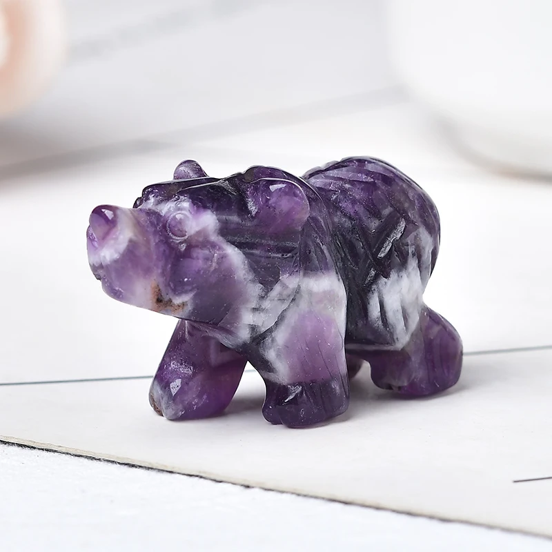 1PC Natural Crystal Bear Figurine Animals Stone Reiki Polished Crafts Small Decoration Home Decor Christmas Present Souvenir