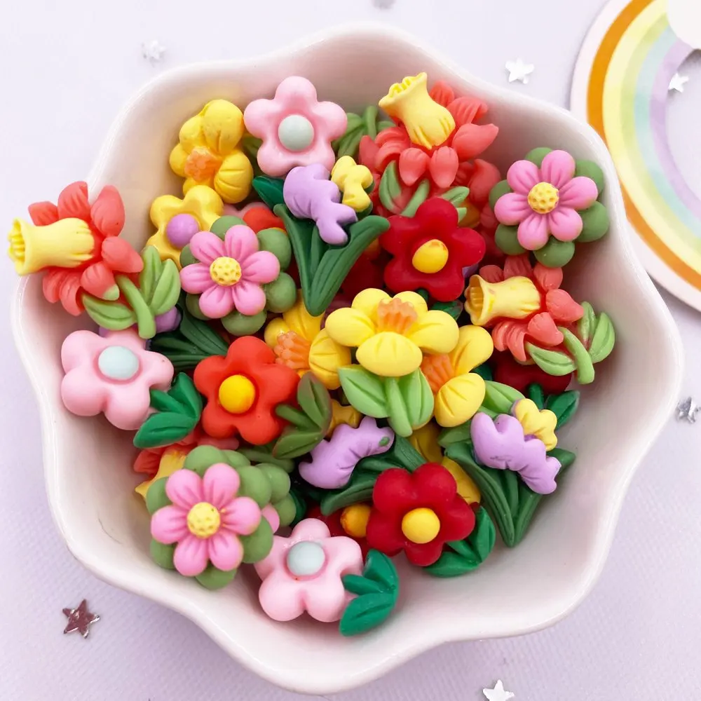 Colorful Various Resin Painted Kawaii Mini Cute A Flower Flatback Cabochon Stone Figurines Christmas DIY Scrapbook Crafts OM132