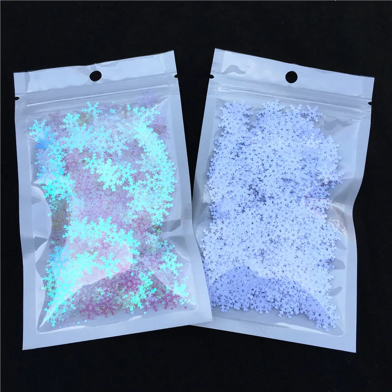 10g/bag 8mm 10mm Snowflake PVC Sequins With 1 Center Hole Christmas Gift Cloth DIY Navidad Ornaments White Snow Sequin Sew Craft