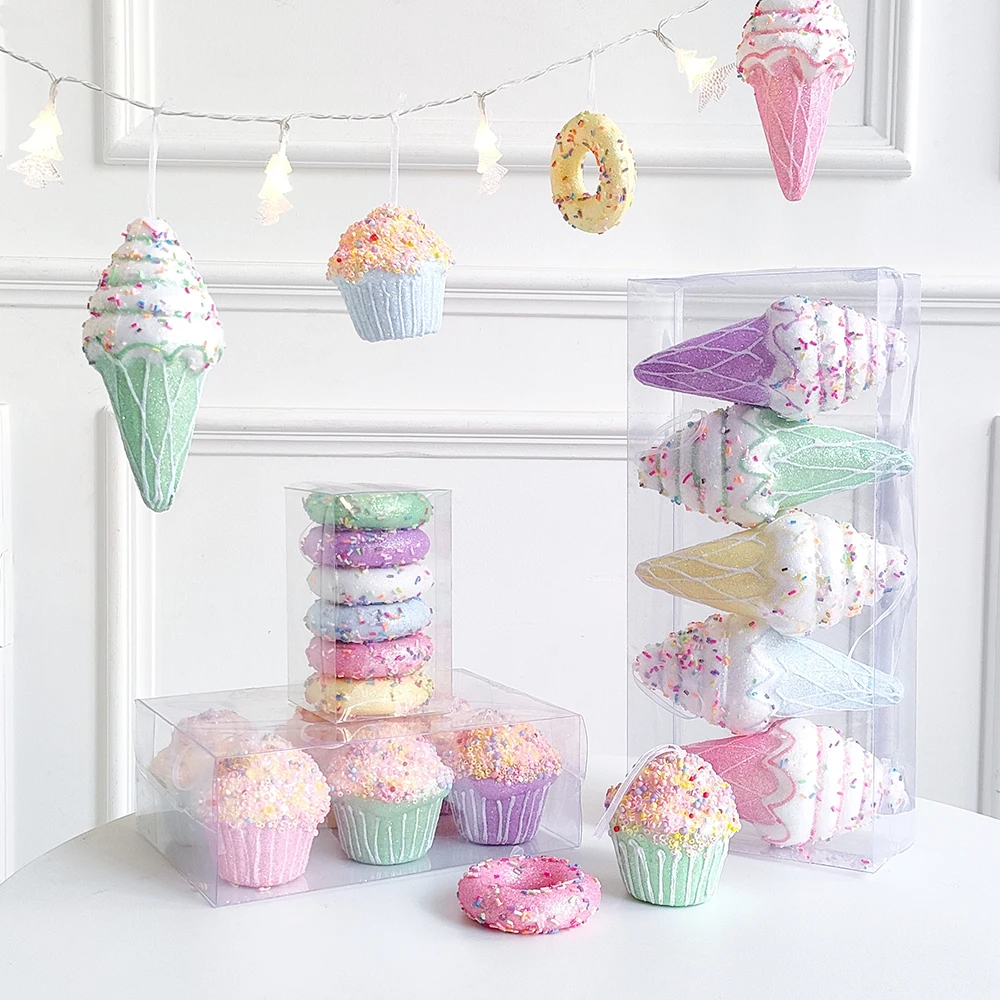 1Box Christmas Ball Macaron Ice Cream Donut Candy Shape Christmas Tree Pendant 2023 Home New Year Navidad Christmas Decor 2024