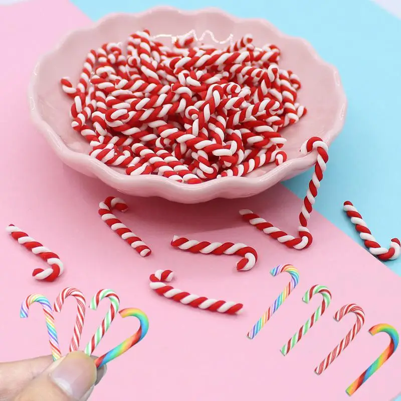 Kawaii Christmas Candy Cane Resin Cabochons For Xmas Tree Hanging Ornaments Scrapbooking Crafts Making Phone Deco DIY Accessorie