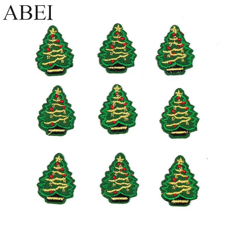 10pcs/lot Embroidered mini Christmas Xmas Tree Patches Iron On Appliqued Diy Clothing Stickers Handmade Patchwork for Hats Shoes