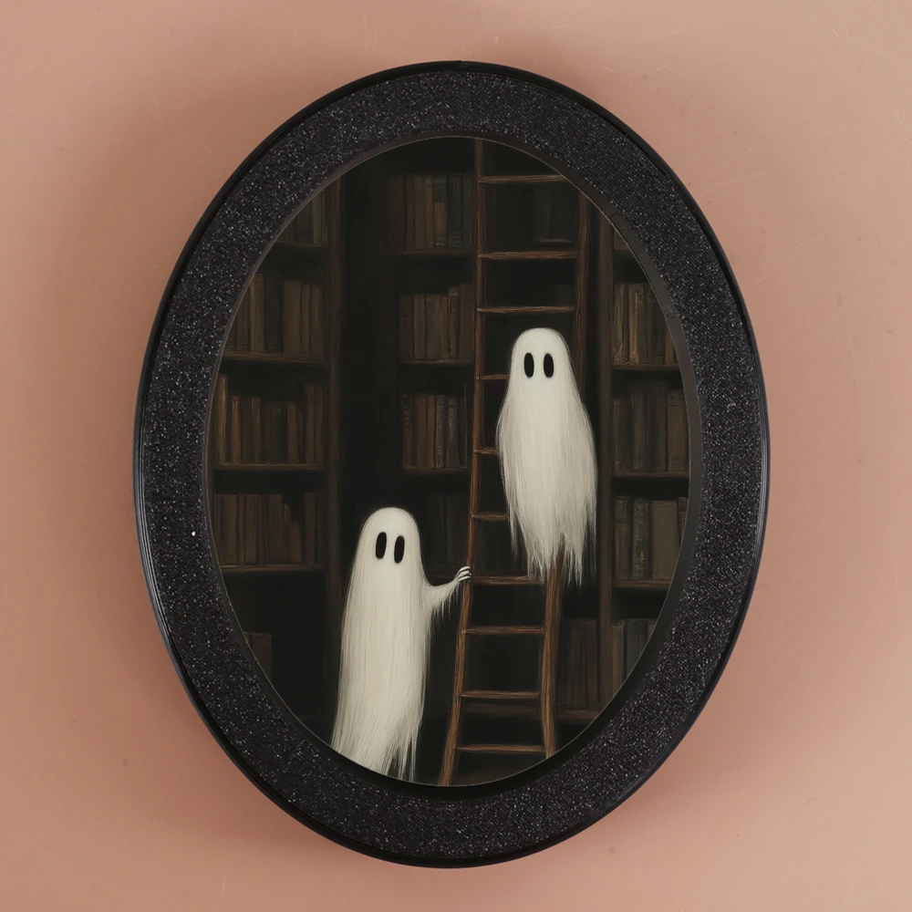 Cross-border Halloween Oval Decorative Ornament, Double Ghosts in Library Scene, Creating Mysterious & Artistic Atmosphere, Suit