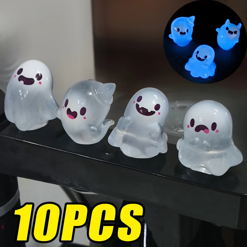 2/5/10PCS Halloween Cute Ghost Small Figurines Luminous Decoration Mini Toy Party Cartoon Resin Desktop Ornament Glow in Dark