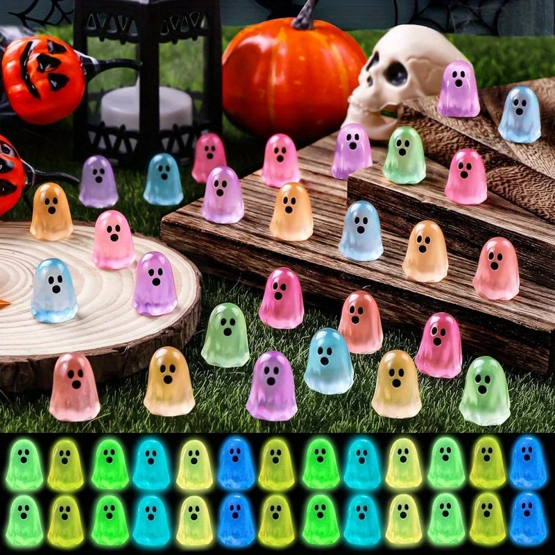 50PCS Mini Luminous Ghost Ornaments DIY Accessories Tiny Resin Handicraft Glowing Kids Toys Home Decor Halloween Gifts
