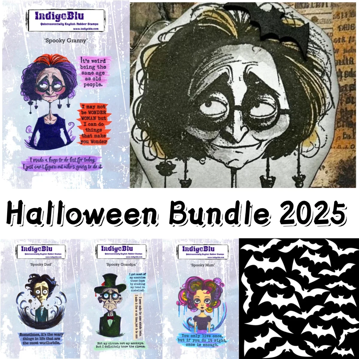 Halloween Bundle 2025 Spooky Grandpa Clear Stamps Bat Stencil for DIY Making Card Scrapbook Embossed Craft Template Decoration