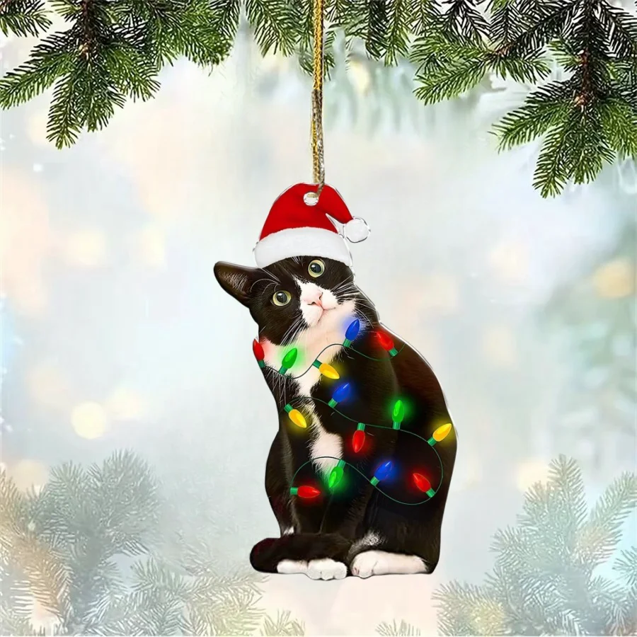 Christmas Cat Pendant Halloween Cartoon Animal Christmas 2D Acrylic Xmas Tree Ornaments 2024 New Year Home Decor