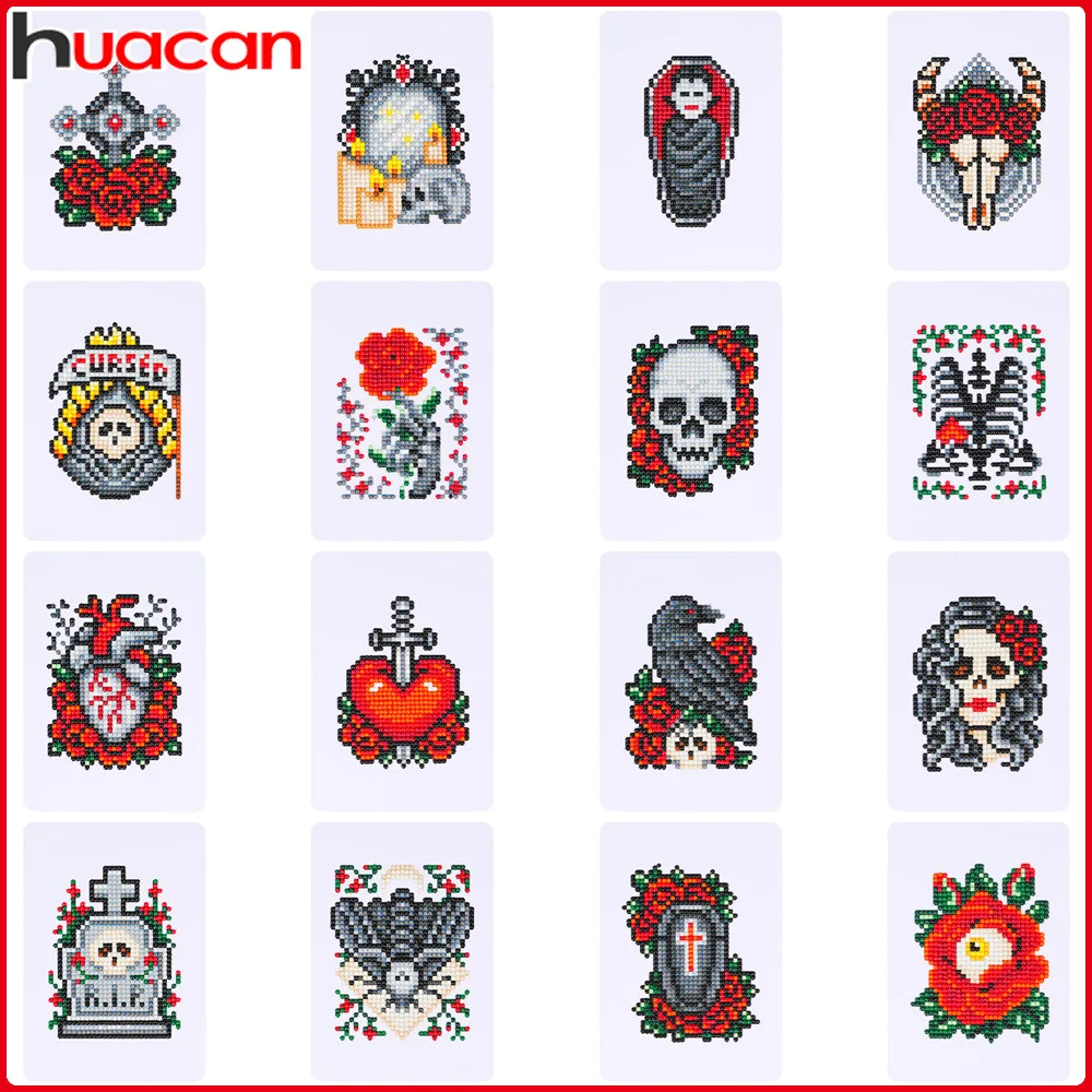 Huacan 16pcs Halloween Diamond Painting Cartoon Flower New Collection Full Round Mosaic Portrait Skull Handmade Wall Decor