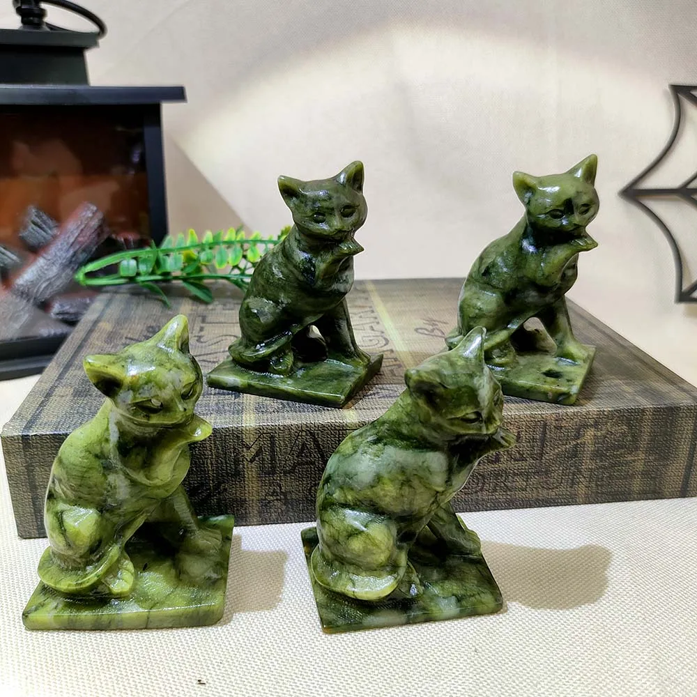Xiuyu Jade Cat Cartoon Craft Ornament Natural Crystal Halloween Home Decorations High Quality Healing For Childs Festival Gifts