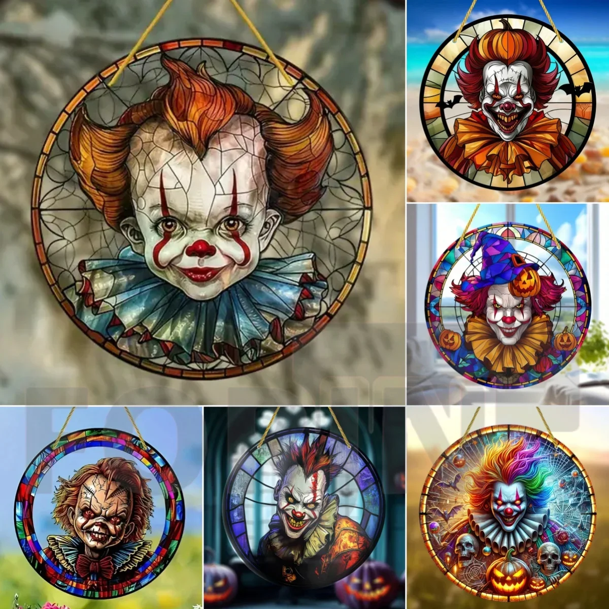 Clown Theme Sun Catcher, Round Acrylic Translucent Window Hanging, Halloween Gift for Friends, House, Porch, Patio Bar, Garden Decor