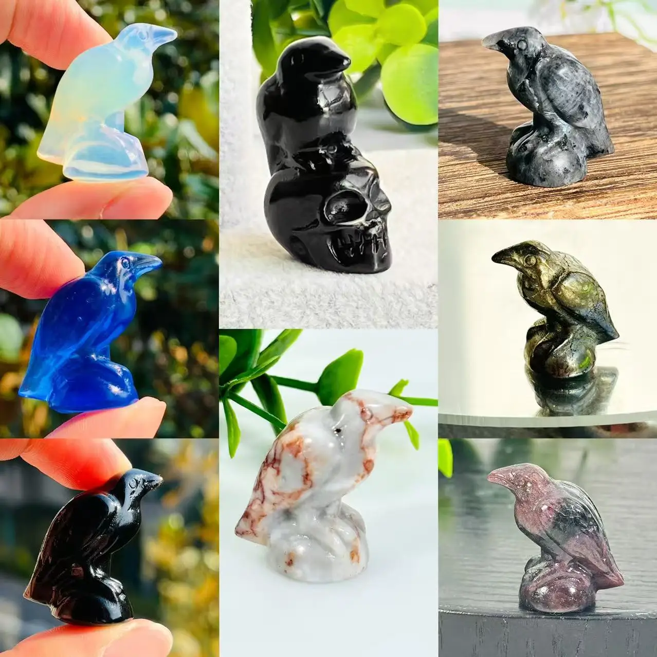 [Halloween Collection Part 1 - The Crow] Natural Larvikite, Garnet, Red Network, Yooperlite, Obsidian Raven Carving, Halloween D