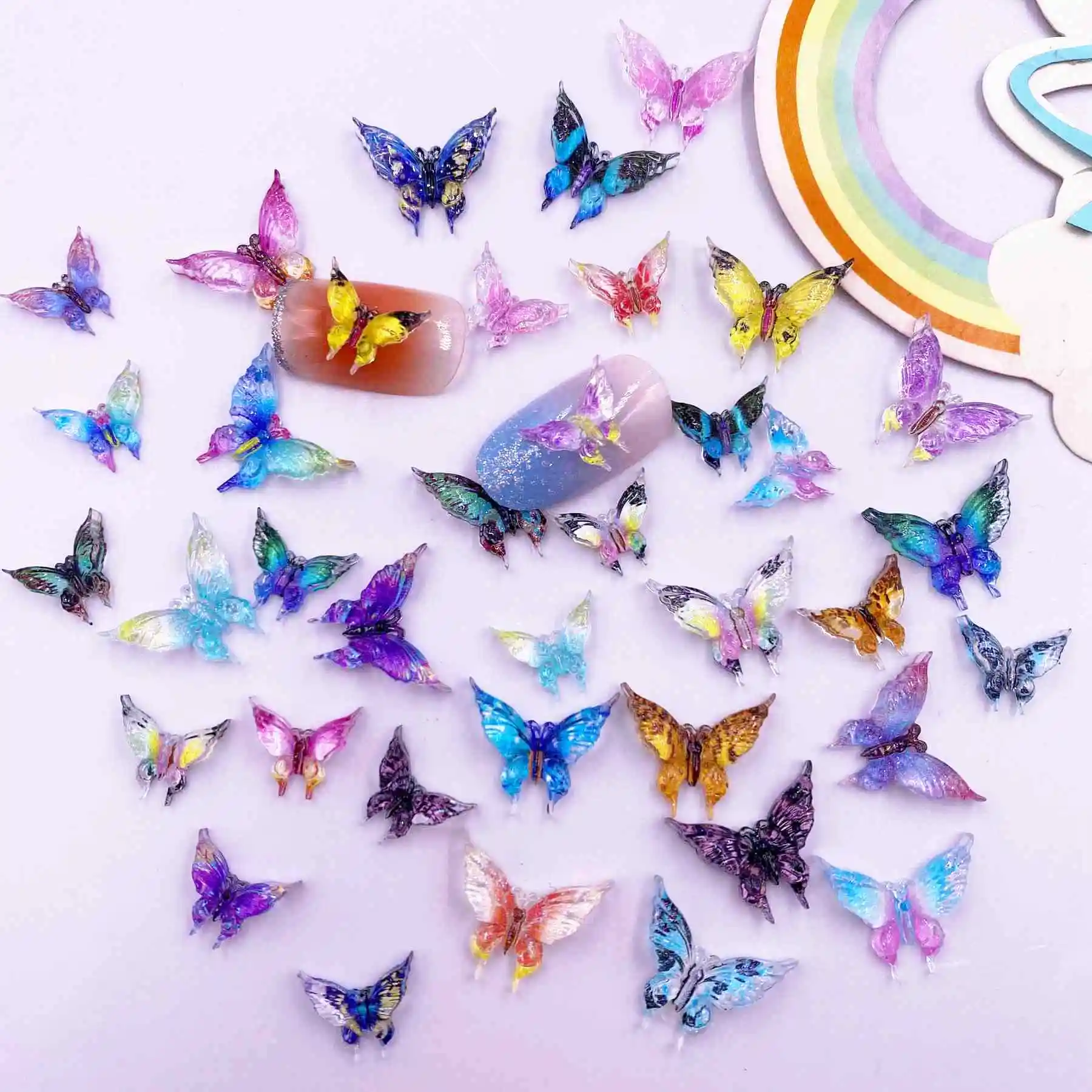 30pcs Resin Colorful Kawaii Crystal Butterfly Gem Flatback Rhinestone Figurines Scrapbook Wedding Applique Nail Art Decor Crafts
