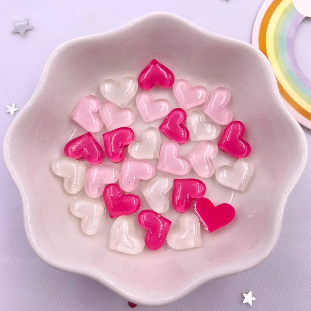 50pcs Resin Cute Crystal Pink Rose White Shiny Heart Art Nail Flatback Rhinestone Figurines DIY Wedding Scrapbook Decor Crafts
