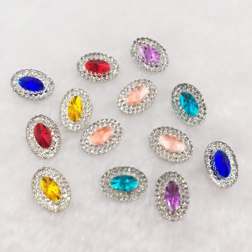 60pcs Resin 10*14mm Oval Gem flatback Bling rhinestone Ornaments DIY scrapbook Wedding appliques craft SW36