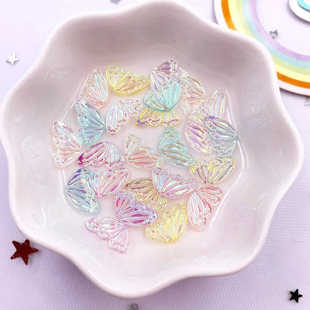 100pcs AB Resin Glitter Mini Crystal Fairy Wings Art Nail Flatback Rhinestone Figurines DIY Wedding Scrapbook Decor Crafts L795