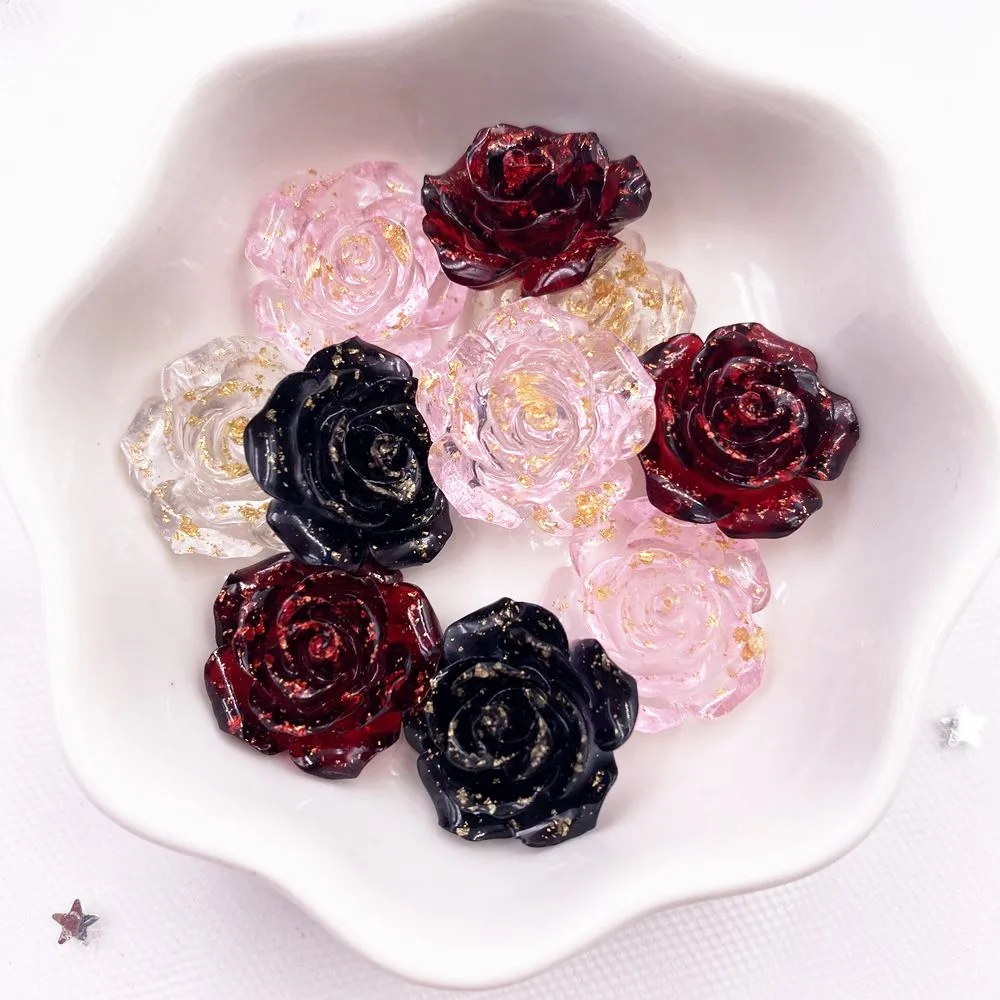 16Pcs 18mm Resin Gold Foil Rose Flatback Flower Rhinestone Gems Garden Figurines Scrapbook Wedding Applique Crafts DIY OL54