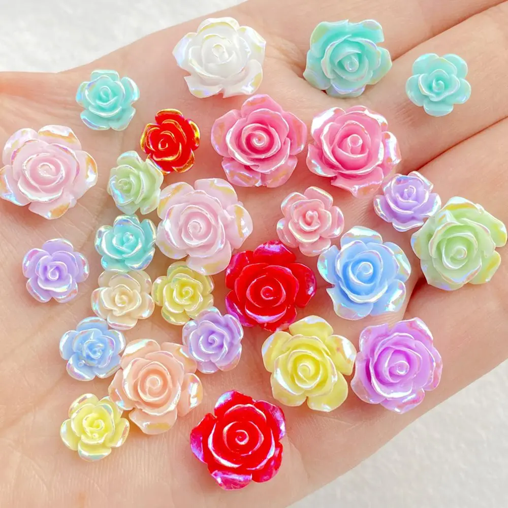 20pcs 9/14mm AB Resin Rose Flatback Flower Rhinestone Gems Scrapbook Wedding Ornaments Applique Crafts DIY