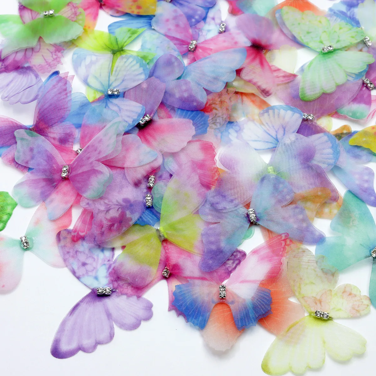 Mixed Bulk 20pcs Approx2"(50mm) Organza Butterfly Two Layers Butterflies Craft Wedding Ornament Appliques (Organza butterf