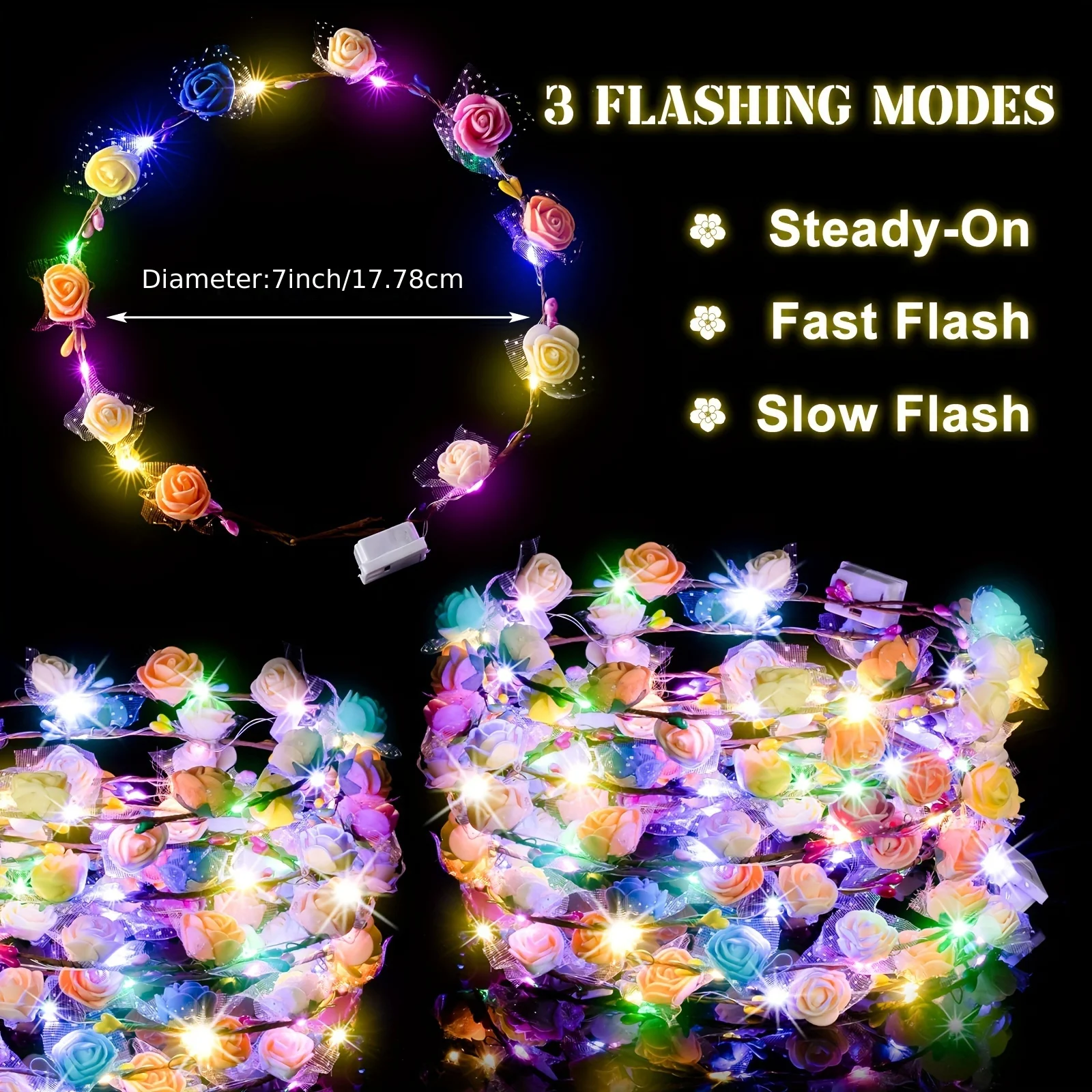 10pcs LED Flower Wreath Headband Multicolor Light Up Headband Lighted Head Band Glow Wreath for Wedding Party Christmas Garlan