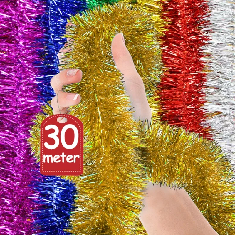 1.5/30M Long Bold Thicked Stripes Christmas Garland Colorful Christmas Wrapping Tinsel Ribbons Bar Wedding New Year Party Decor