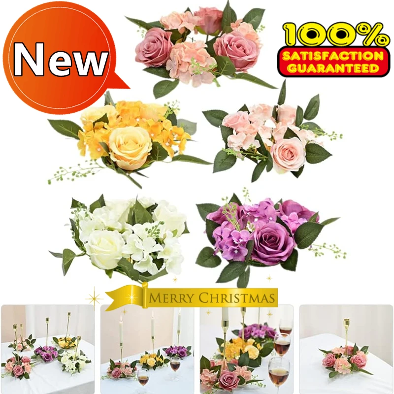 20CM Candle Rings Candlestick Wreath European Artificial Rose Wreath Christmas Decoration Window Props Table Wedding Arrangement