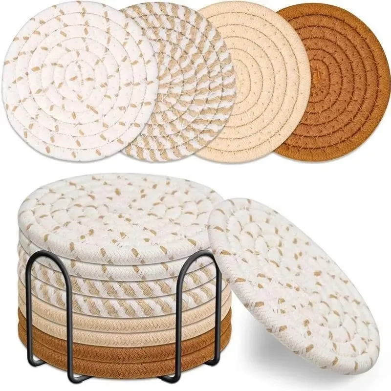 Concise Style Cotton Rope Woven Placemat Household Thick Insulated Coaster Hand Woven Cotton Linen Coaster With Storage Rack