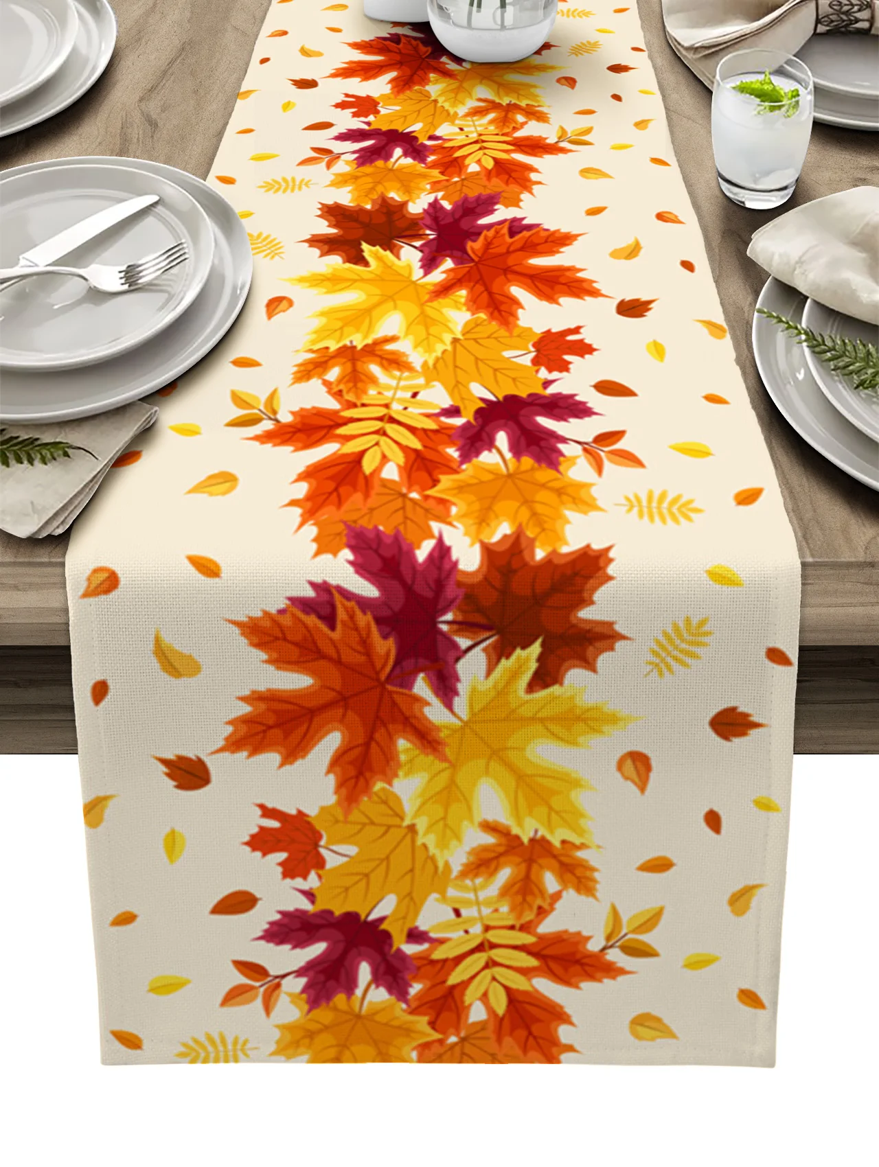 Thanksgiving Autumn Maple Leaves Table Runner Christmas Dinner Table Cloth Wedding Party Decor Cotton Linen Tablecloth