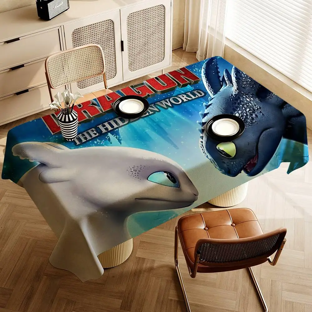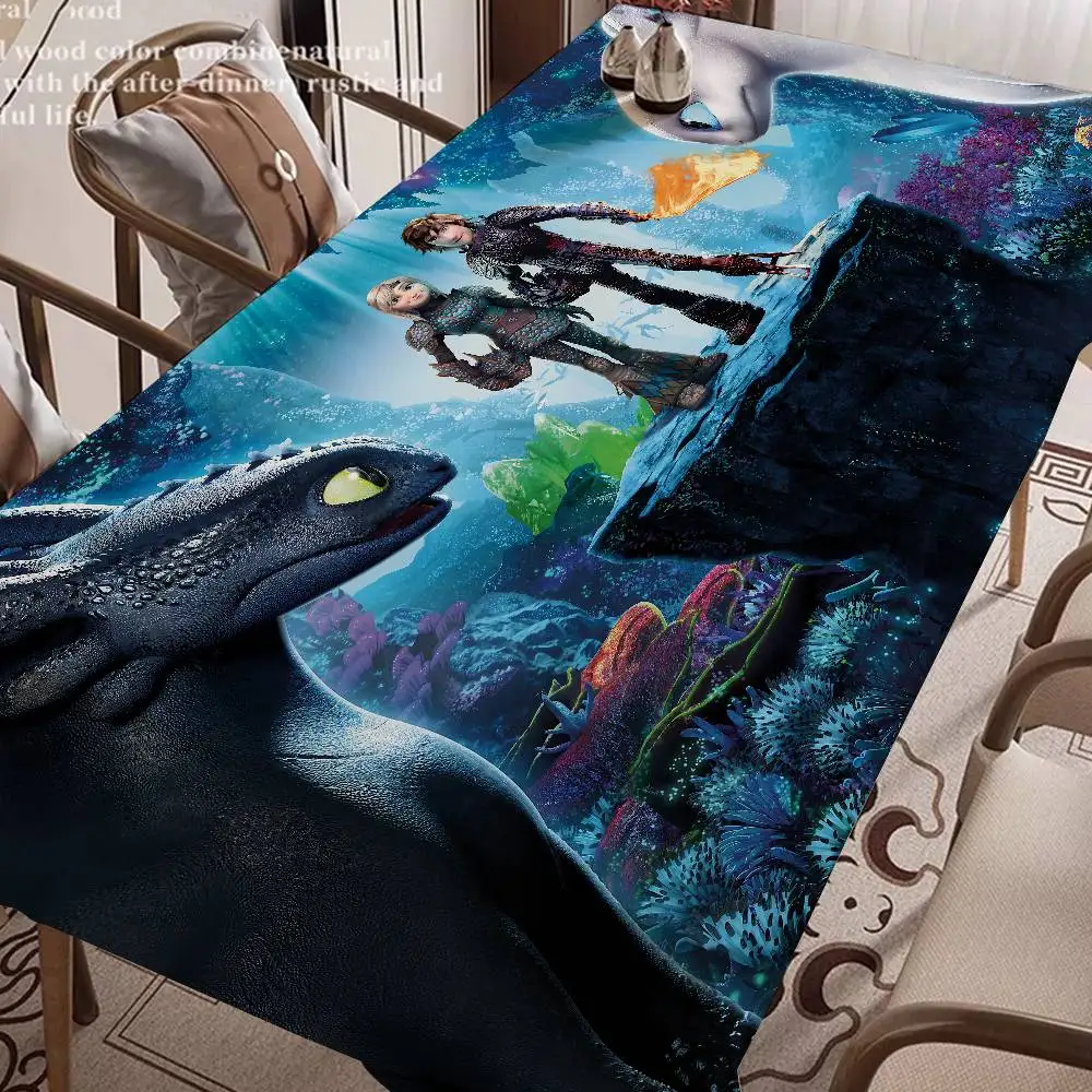 H-How To Train Cartoon Your D-Dragons Cool Polyester Waterproof Tablecloth Bedside Decorative Living Room Coffee Tablecloth
