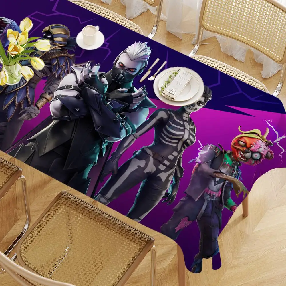 Game F-Fortnite-ES Cool Table Stain Resistant Decorative Washable Polyester Tablecloths For Dining Table Parties And Wedding