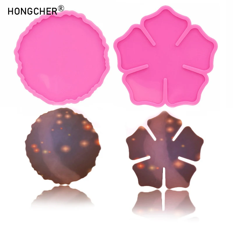 Shiny mirror round fruit plate coasters silicone mould flowers leaves handmade table setting diy crystal drip moulds