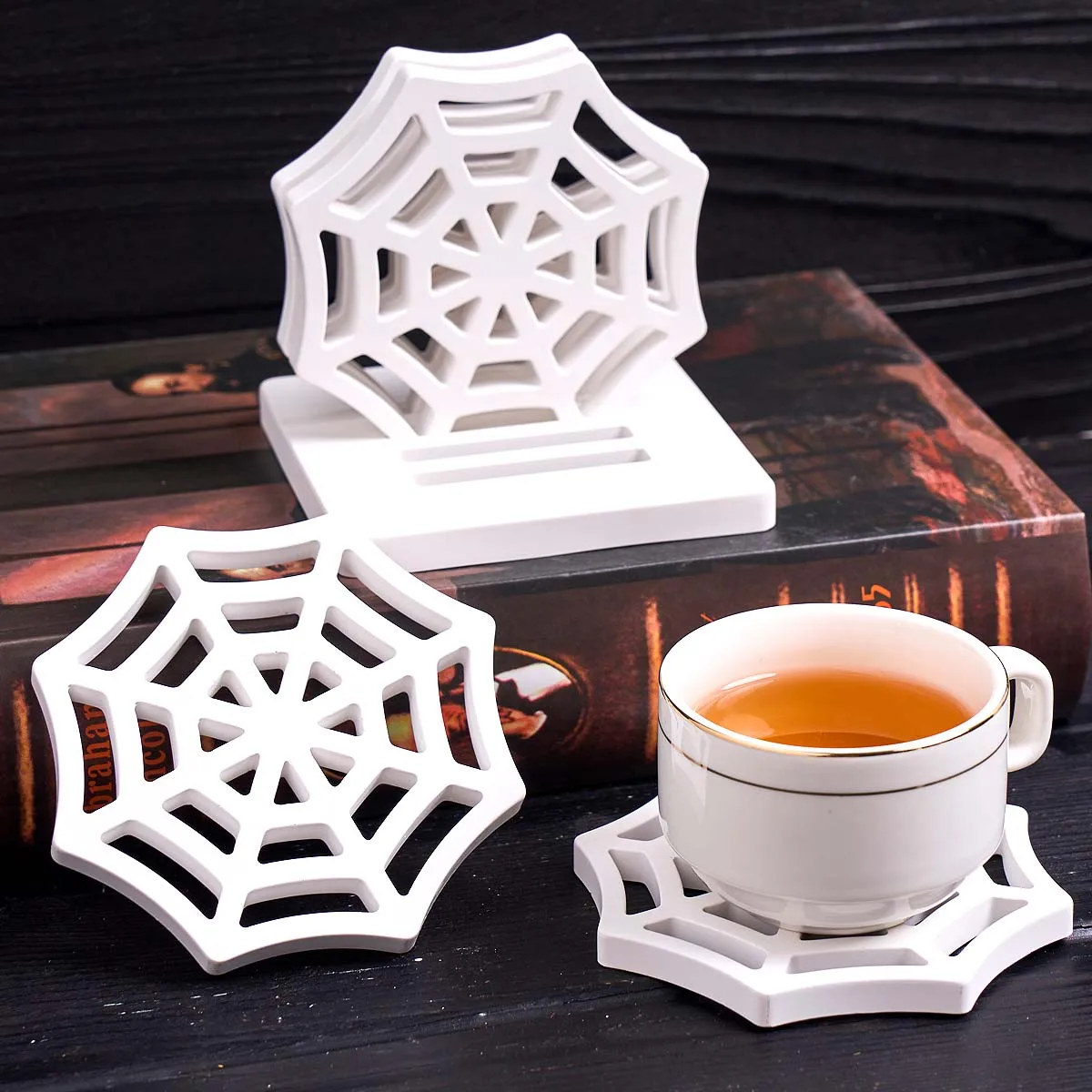 Halloween Coaster Storage Rack Set Silicone Mold DIY Handmade Skull Pumpkin Display Plate Plaster Resin Craft Molds Home Decor