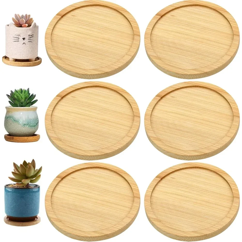 1pcs Small Circular Succulent Flowerpot, Plant Tray Bottom Support, Miniature Plants, Natural Bamboo Coasters, Wooden Plates