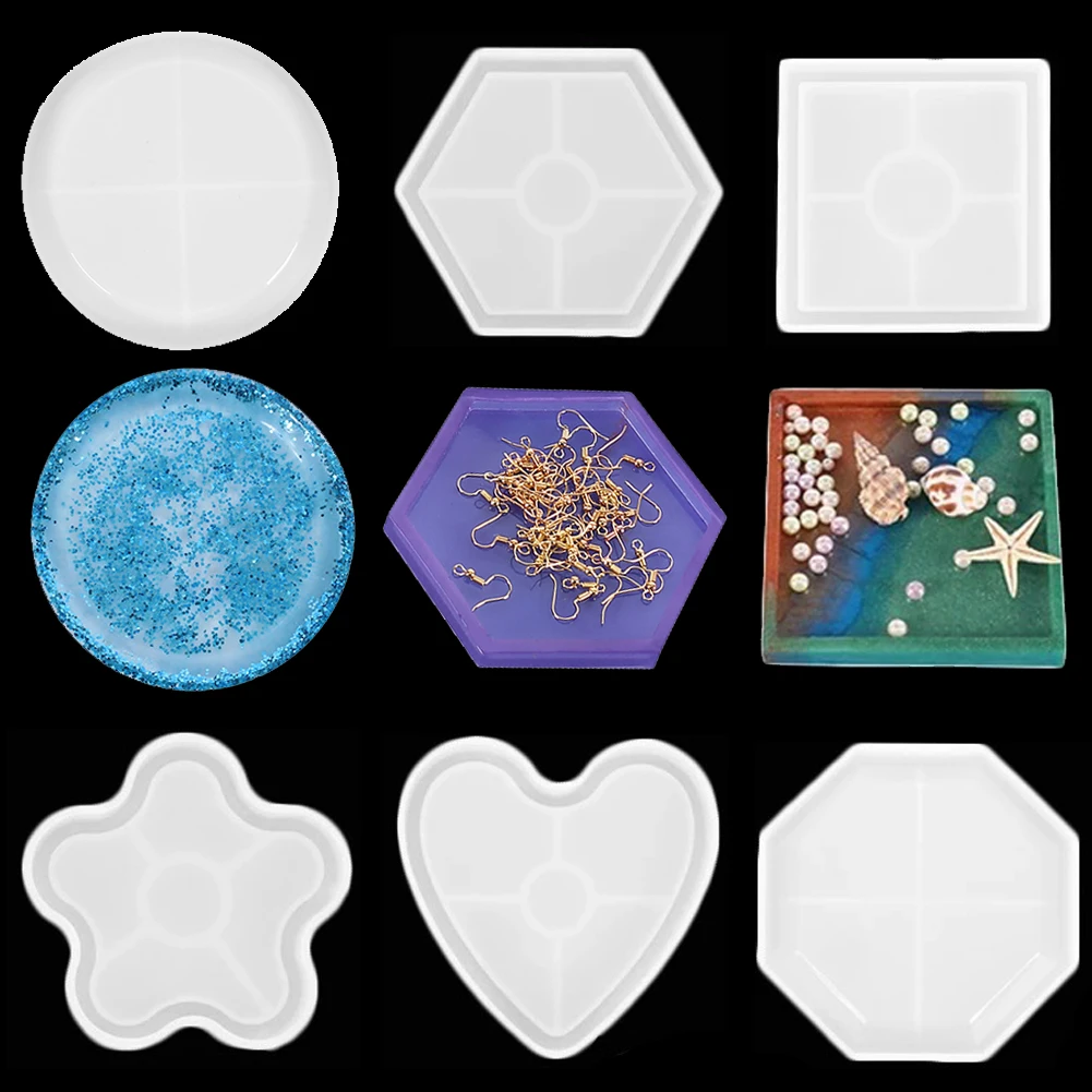 Tray Coaster Silicone Mold DIY Geometric Round Square Heart Hexagon Coaster Storage Plate Epoxy Resin Mold Home Decor