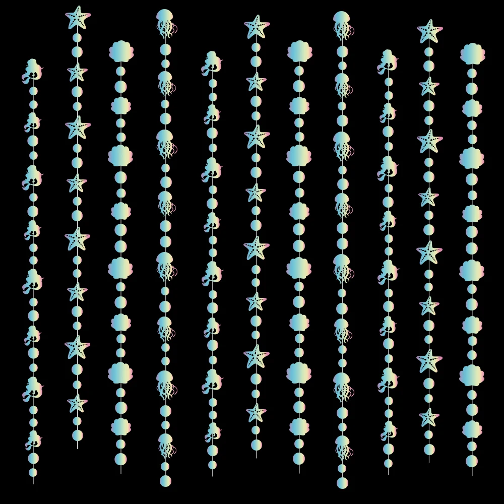 24pcs Iridescent Mermaid Paper Seashell Starfish star Garland Under The Sea theme Mermaid Birthday Party Hanging Streamer Decor