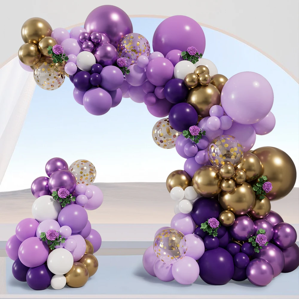 118PCS Purple Butterfly Balloon Garland Arch Macar Purple Chrome Gold Ball Girl Birthday Party Baby Shower Wedding Deco Balloon
