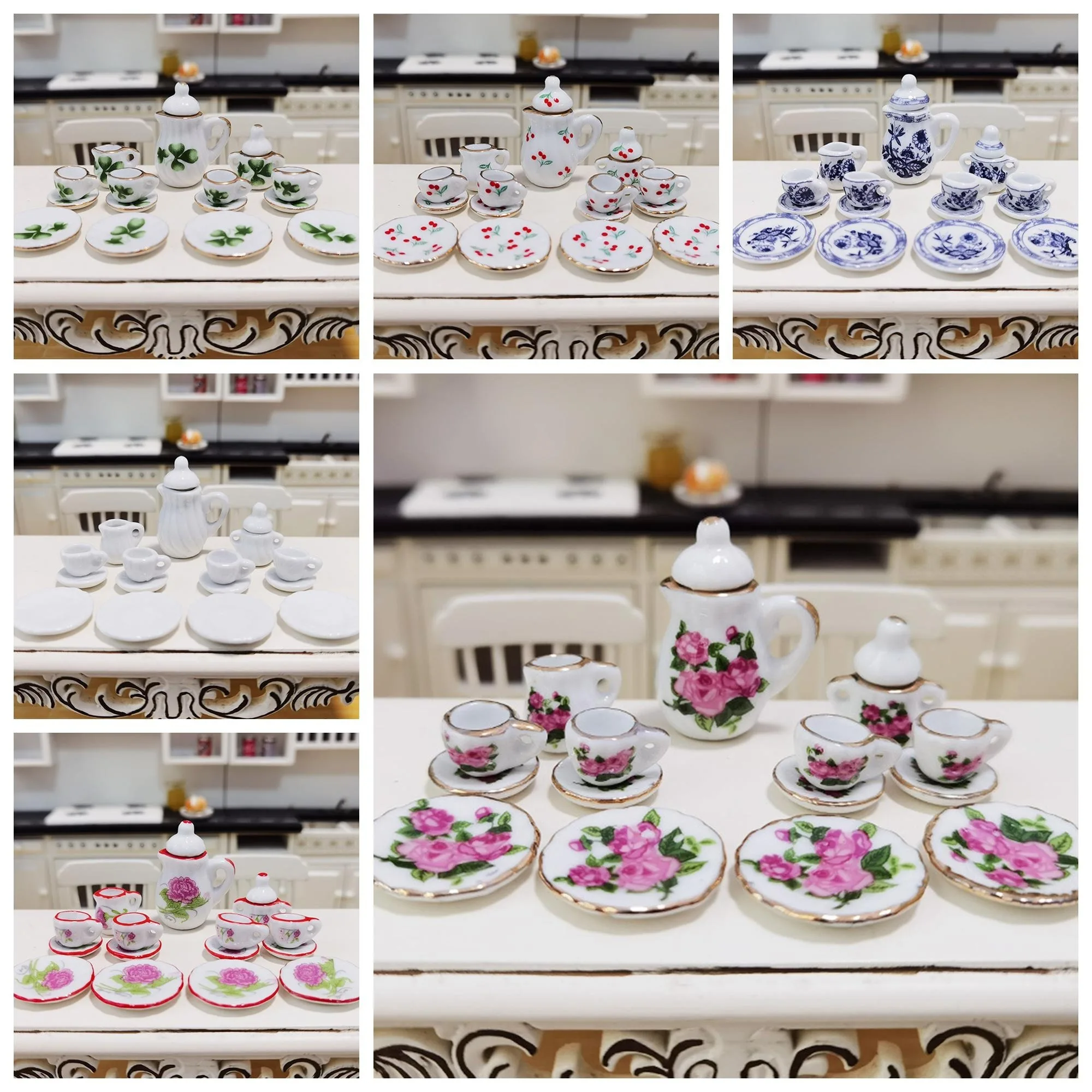 15pcs/Set 1:12 Mini Dollhouse Miniature Tableware Porcelain Ceramic Tea Cup Teapot Cup Plate Dollhouse Kitchen Furniture Toys