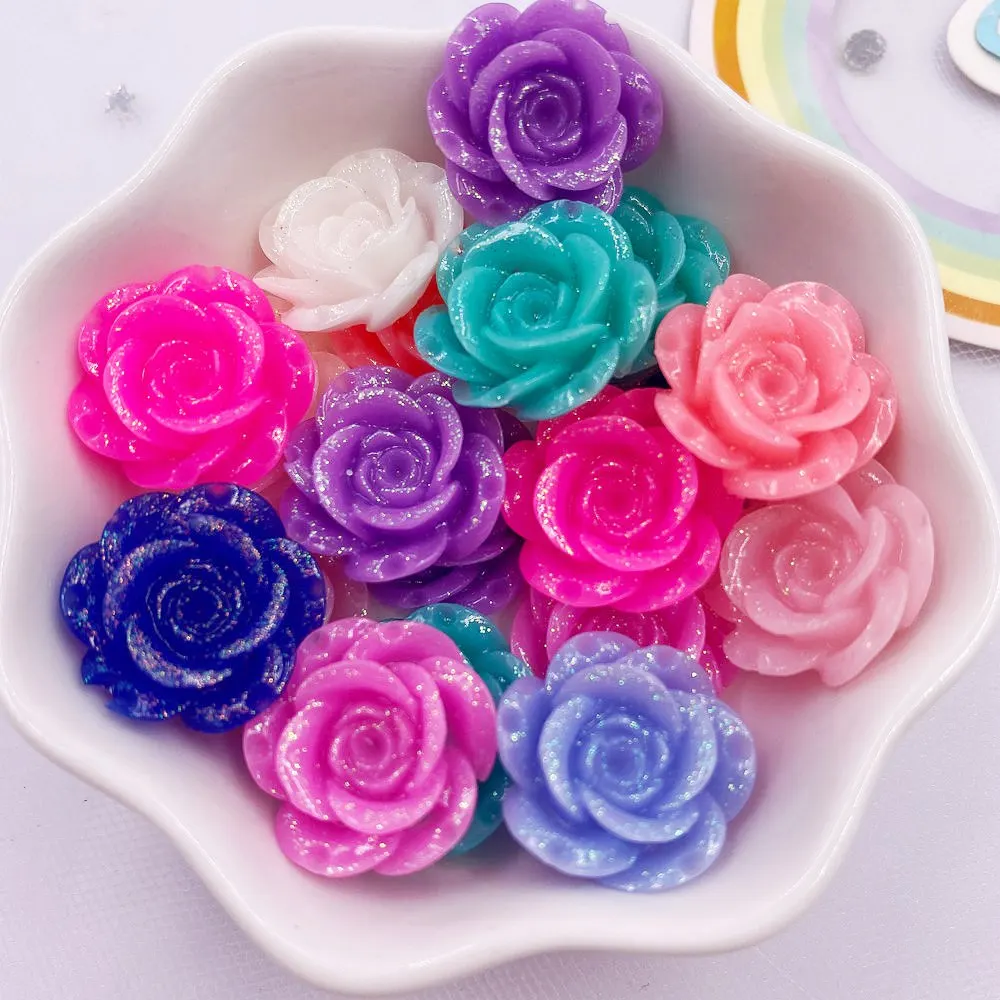 Resin 18mm Glitter Rose Flatback Big Flower Rhinestone Gems 10Pcs Figurines Scrapbook DIY Home Ornaments Applique Crafts OF578 L