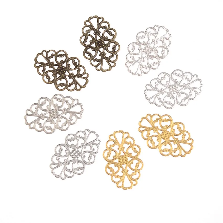 Free shipping 50Pcs Filigree Flower Wraps Connectors Metal Crafts Decoration DIY Findings Connectors 32x20mm
