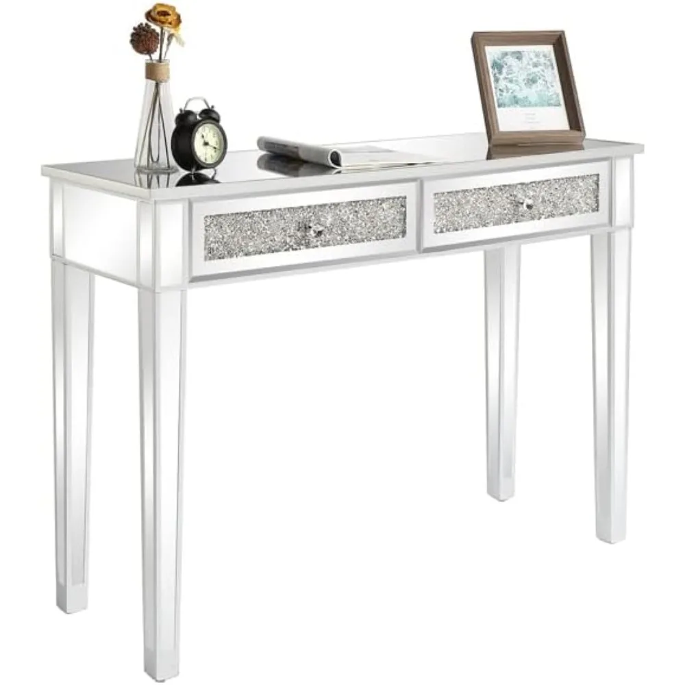 Mirror dressing table set, silver makeup dressing table with 2 drawers, computer desk, modern writing desk, mirror desk