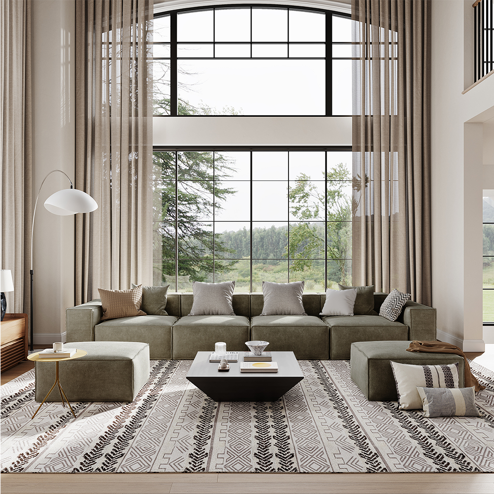 147.63" Minimalist Modular Sofa with 2 Ottoman, Large Track Arm Couch, Anti-scratch and Water-proof, Khaki