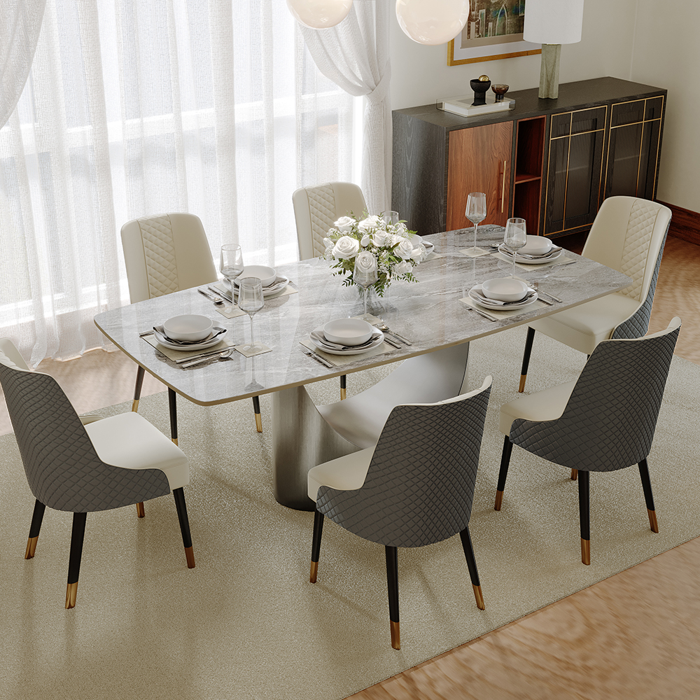 94"Hobart Modern Minimalist Dining Table For 8-10, Gray Rectangular Glossy Sintered Stone Tabletop, Bronze Carbon Steel Base