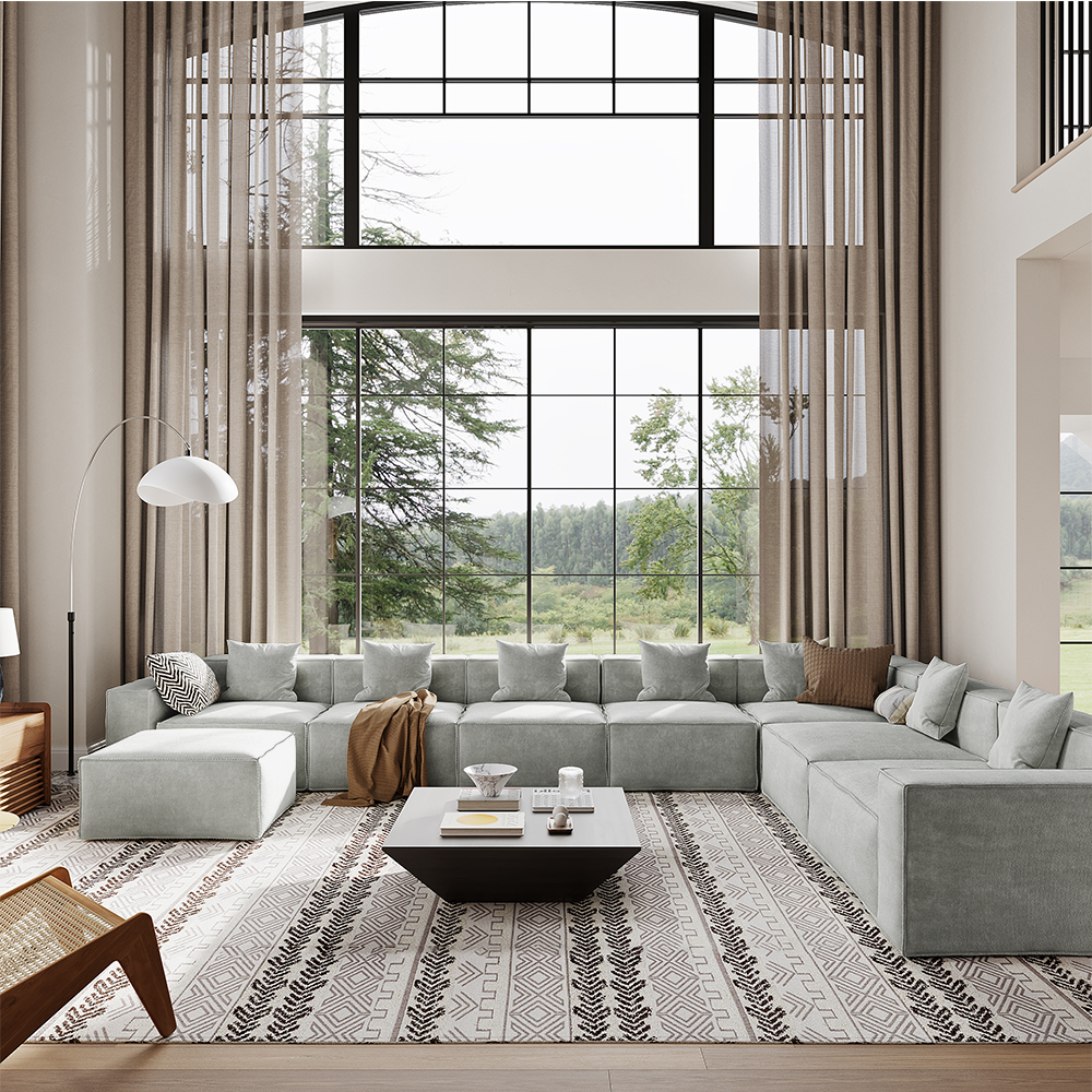 174.77" Modular Sofa, L-Shape Sofa with Couch Ottoman, Oversized Sofa, Anti-scratch and Water-proof, Light Gray