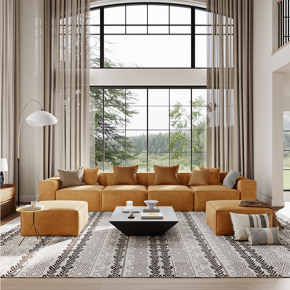 143.30" Modular Sofa, L-Shape Sofa with Couch Ottoman, Oversized Sofa, Anti-scratch and Water-proof, Yellow