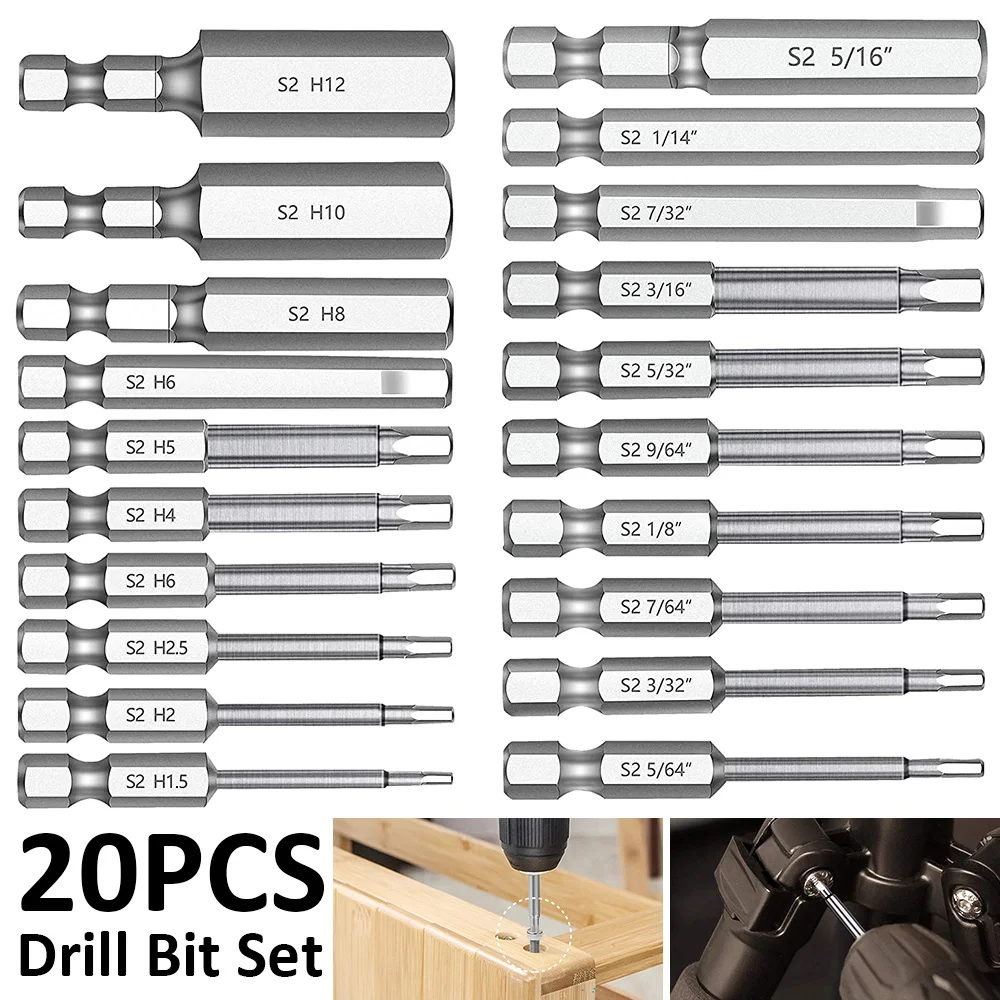 20Pcs Hexagonal Screwdriver Head Set S2 Alloy Steel Allen Screwdriver Socket Bit Metric Magnetic Screwdriver Bits Tool