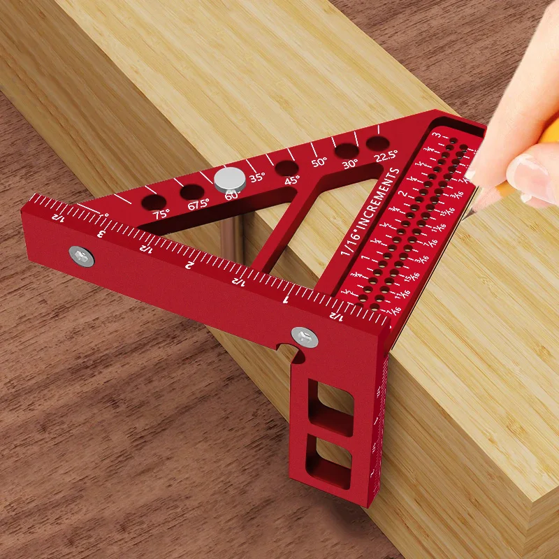 Precision Aluminum Alloy Miter Triangle Ruler 45°/90° Woodworking Square Protractor 3D Multifunctional Measuring Toolsolss