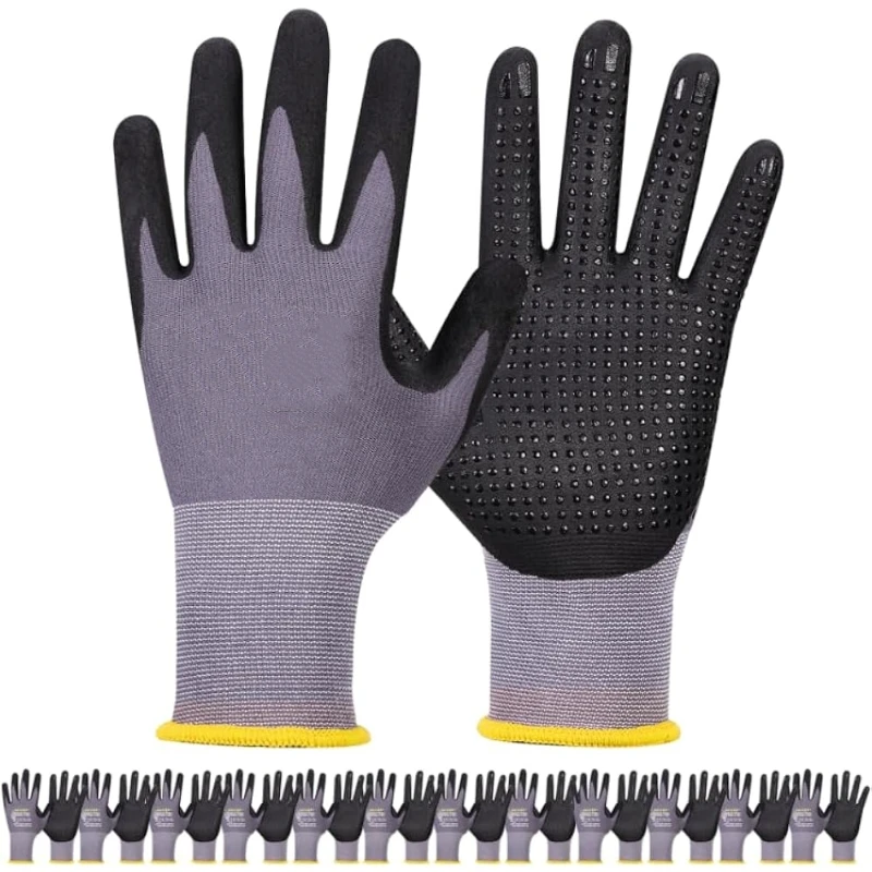 6PCS Work Gloves MicroFoam Nitrile Coated Durable Seamless Knit Safety & Work Gloves with Dot Grip for Men Mechanic Auto Garden