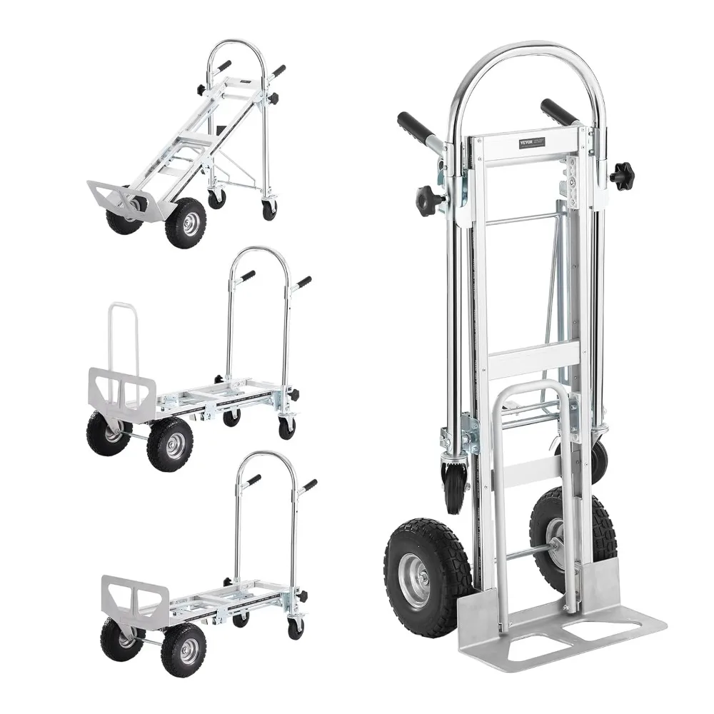 Aluminum Folding Hand Truck, 4 in 1 Design 1000 lbs Capacity, Heavy Duty Industrial Collapsible cart, Dolly Cart with Rubber Wh