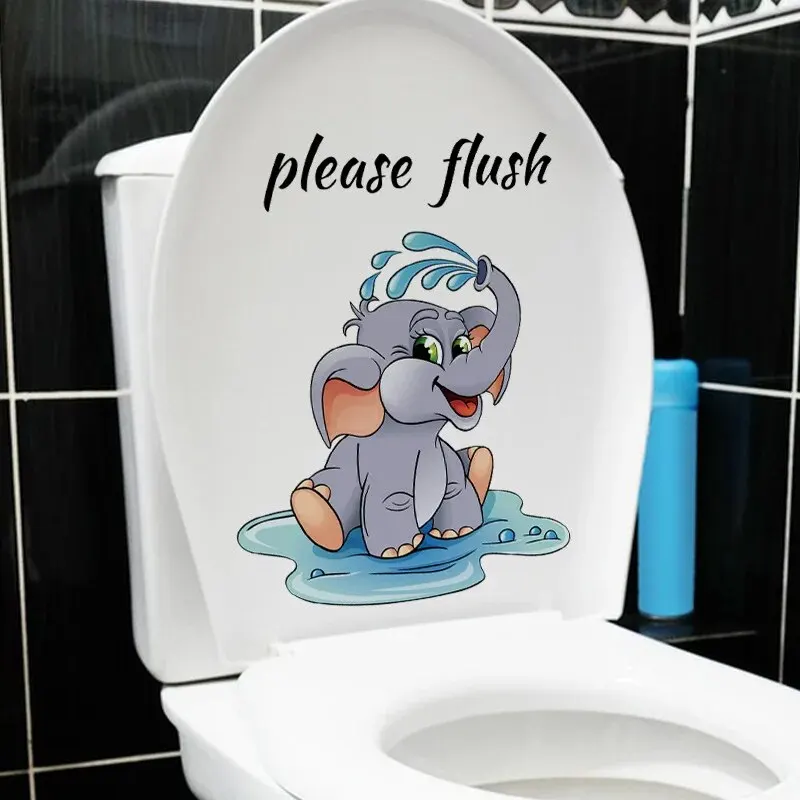 1pc Cartoon Elephant English Toilet Sticker Wall Sticker, Bathroom Decoration Wall Sticker, Self-adhesive and Removable Wall S