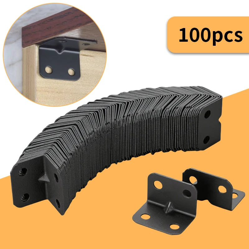 100pcs black corner codes, 4-hole fixed corner brackets, right angle fasteners, for tables, chairs, cabinets, shelves